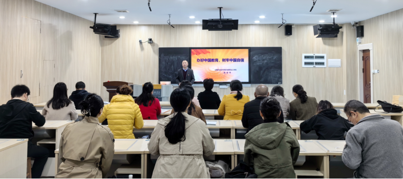 为深入学习贯彻习近平总书记在学习贯彻习近平新时代中国特色社会主义思想主题教育工作会议上的重要讲话精神,贯彻落实中央、省委及省委教育工委和公司党委关于开展主题教育的安排,williamhill于12月20日开展理论专题研讨,由陈忠平教授主讲《办好中国教育,树牢中国自信》,全体党员教师到会参加。